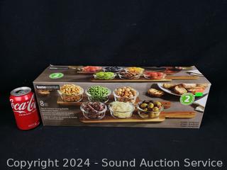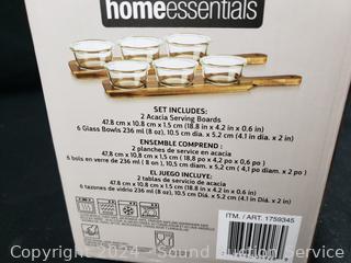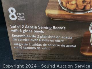 Lot #0233: 2 Acacia Serving Boards & 6 Clear Glass Bowls