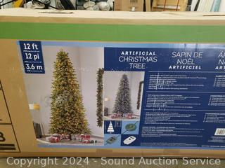 Lot #0036: Massive 12ft Artificial Pre-lit Christmas Tree w/Stand
