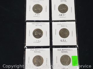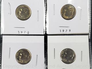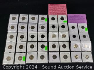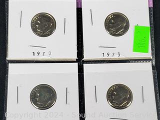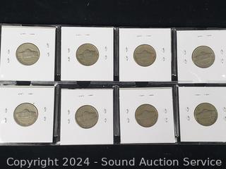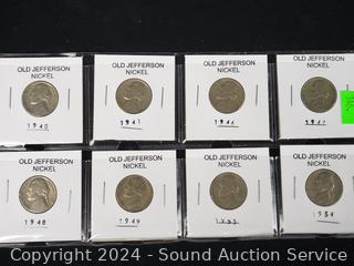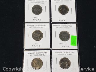 (8) 1970-81 BU Roosevelt Dimes, (6) 1964-81 BU Jefferson Nickels, (10) 2004 Westward Journey Nickels, (14) 1940-57 Old Jefferson Nickels. ATTN: We are not coin or currency experts or graders, please use your own judgement when bidding.