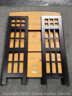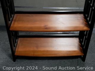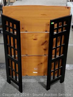 Approx. 35.5" H x 29" x 12". Contrasting, natural wood & black finish. In great condition.