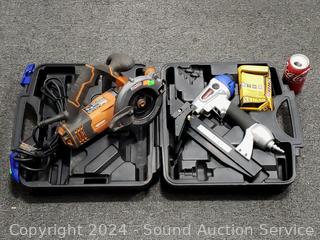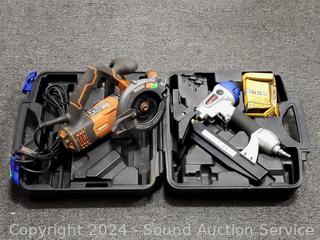 Lot #0244: Ridgid Fuego 5" Cutoff Saw & HighPro 18GA Air Flooring Stapler