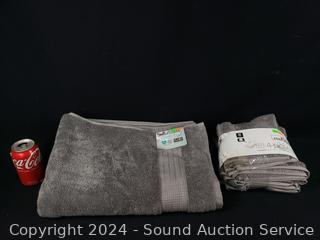 Lot #0163: Set of 5 Purely Indulgent Gray Cotton Towels