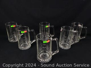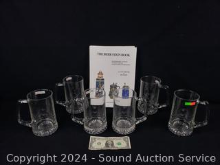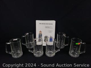 Lot #0054: The Beer Stein Book & 6 Clear Glass Beer Mug