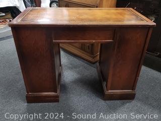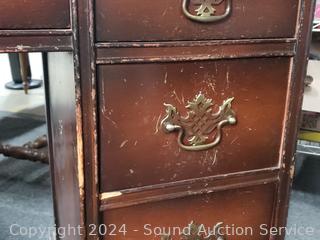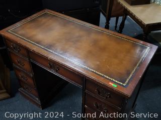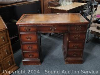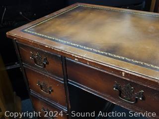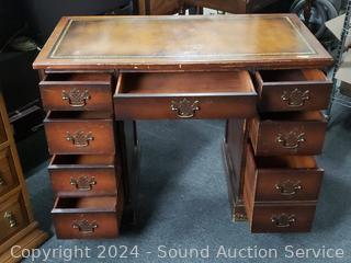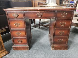 Lot #0014: Vintage Mahogany 9-Drawer Leather Top Desk