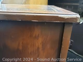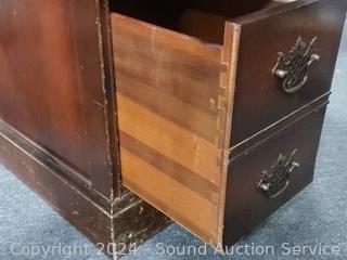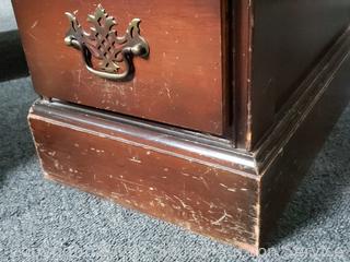 Various scuffs, wear to finish, crazing. Appears to be all wood construction, dovetail joinery. 29.5" H x 40" W x 20" D.