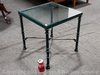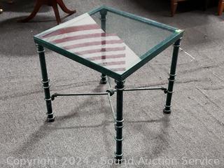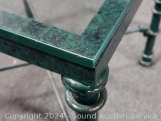 Lot #0015: Wrought Iron Painted Glass Top Accent Table