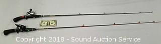 One is a Skyline graphite rod Shimano Bantam IOX SG reel, other is Olympic-1000 fiberglass spinning rod with mini-cast reel.