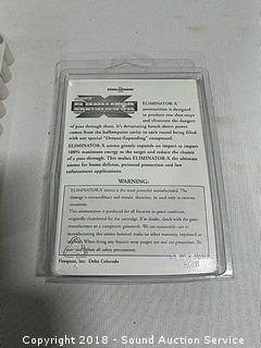 Includes: 34 rounds of Luger, 6 rounds of Eliminator (hollow point).