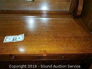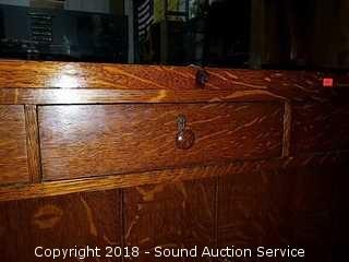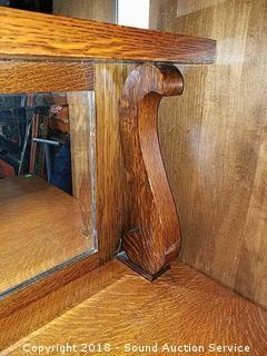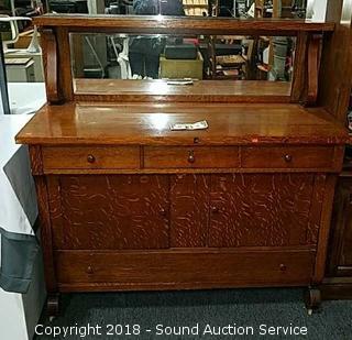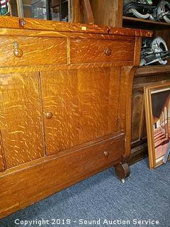 Lot #0152: Antique Tiger Oak Beveled Mirror Buffet