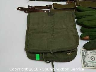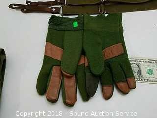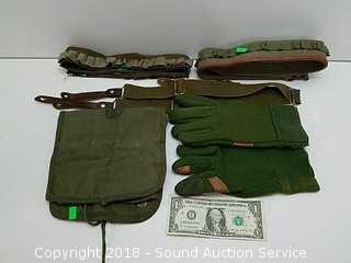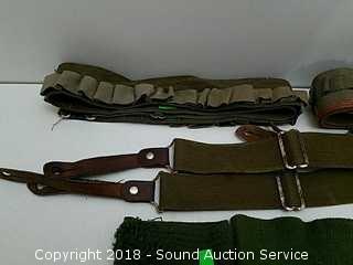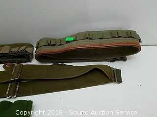 Lot #0271: Army Green Ammo Belts, Suspenders, Gloves & Pouch