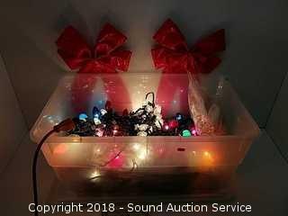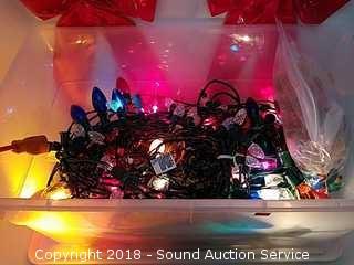 Lot #0044: Collection of Colorful Bulb String Lights w/Tote