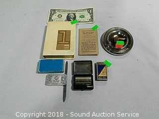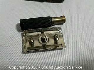 Lot #0240: Compact Razor, Coin Bank & Vtg. Horn Button
