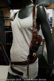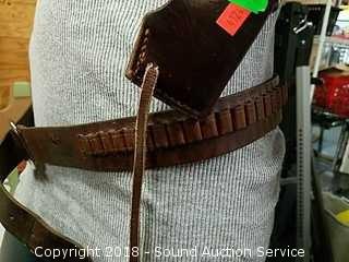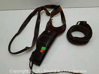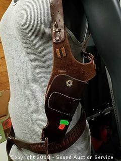 Lot #0266: Pioneer Leather Pistol Shoulder Holster Ammo Belt