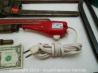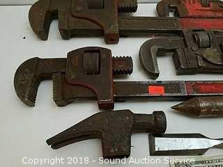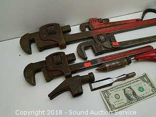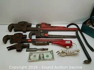 Lot #0014: Pipe Wrenches, Crowbar, Engraver & More