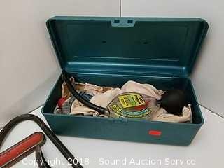 Includes: 24, 18, 14 & 10" pipe wrenches, electric engraver, small crowbars, plumb bob and toolbox with antifreeze tester.