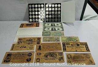 Quarter collection is complete. Bank notes are reproductions. Refer to photos for more information.