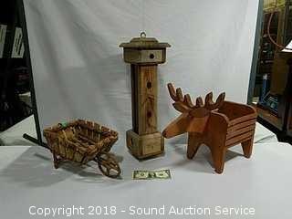 Lot #0214: Wooden Bird House & Primitive Wheelbarrow Decor