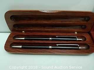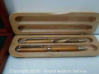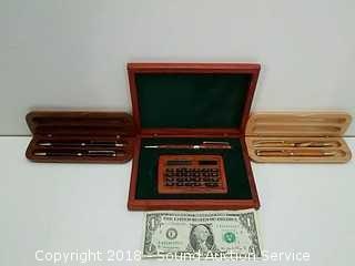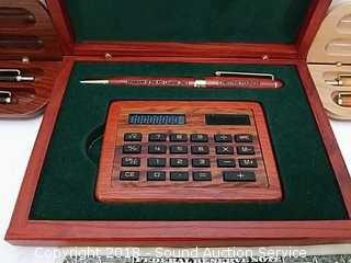 Lot #0293: Woodgrain Pen, Pencil & Calculator Sets w/Cases
