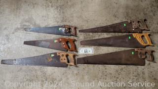 Sandvik, Disston & other. Various wear from age, use. 18" to 26".