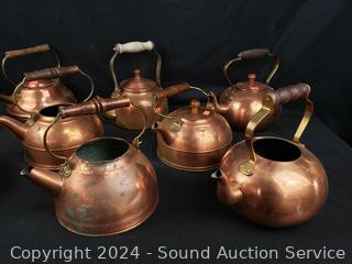 Lot #0006: 8 Copper Teapots