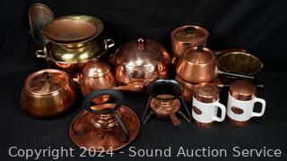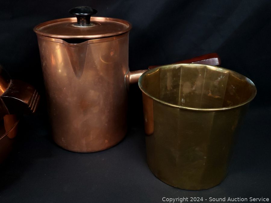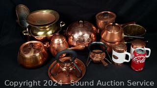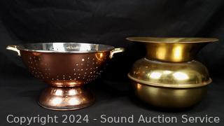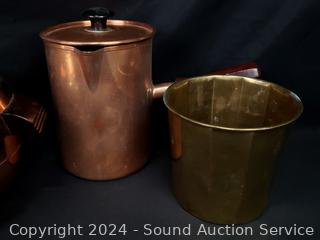 Lot #0061: Assorted Copper Table & Cookware, Brass Spittoon