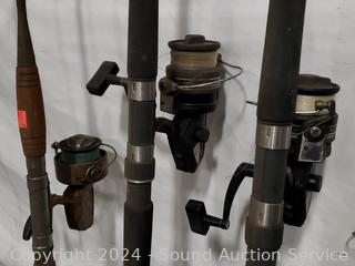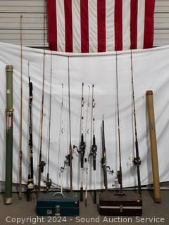Lot #0079: Assorted Fish Rods w/Reels, 2 Tackle Boxes w/Some Tackle