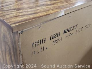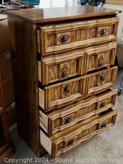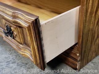 Molded fronts, dovetail joinery. A few minor scuffs along the bottom, otherwise good condition. 49.5" H x 35.5" W x 18" D.