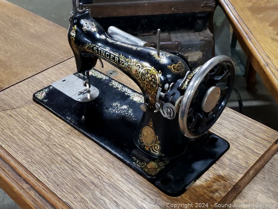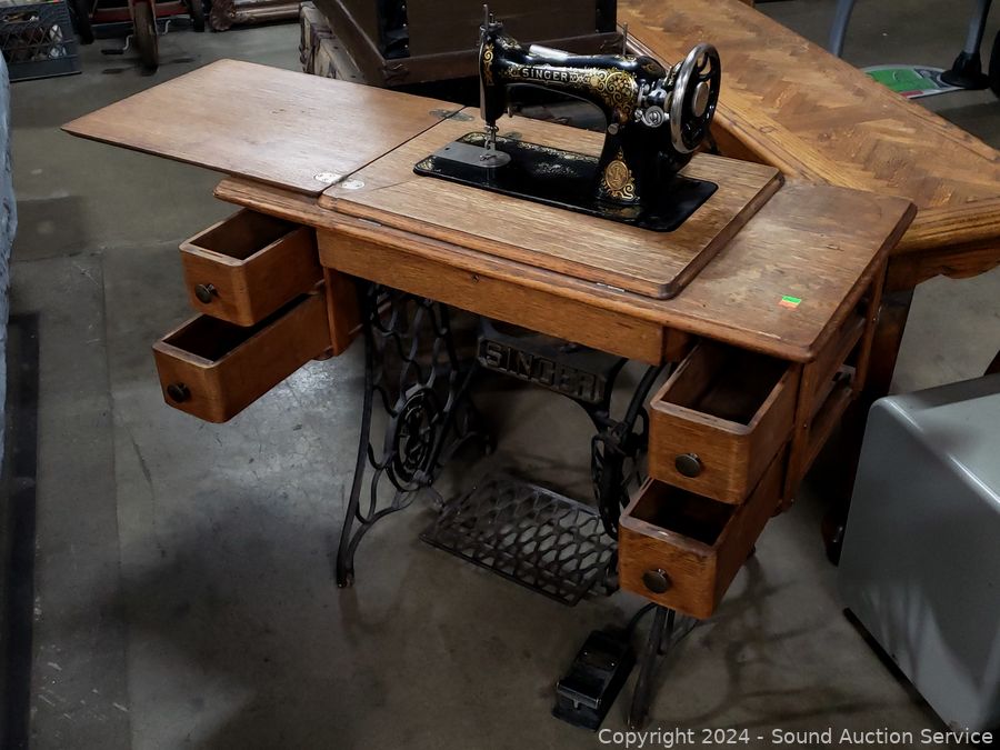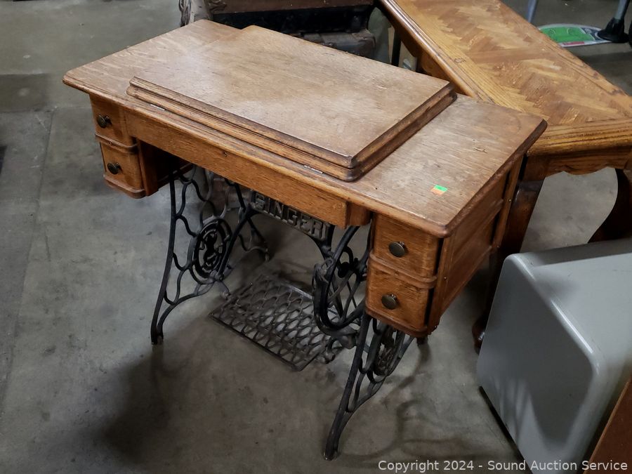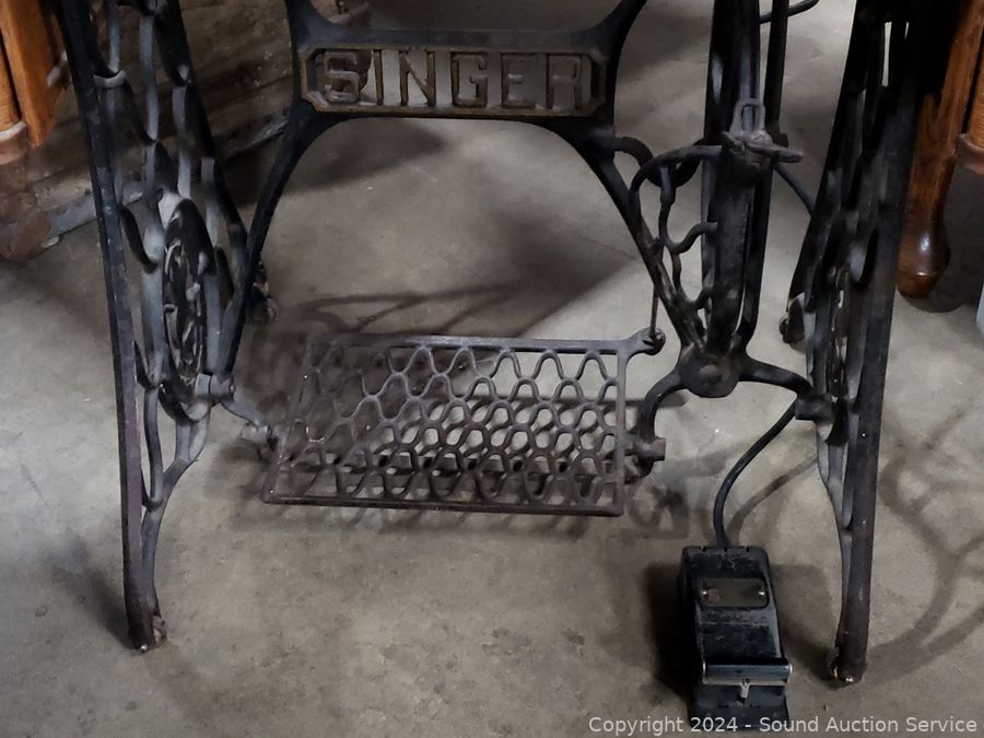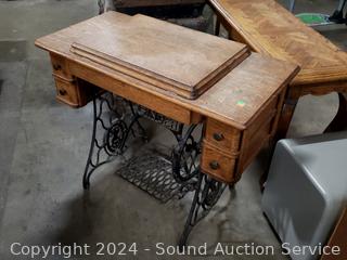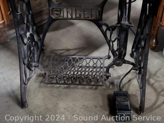 Lot #0046: Vintage Singer Treadle Sewing Machine w/Motor