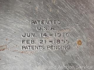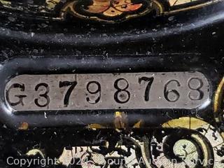 1910 patent date. Serial G3798768. Been electrified with a motor. No belt. Treadle appears to be functioning as intended. Needle moves, motor is untested. 39" H x 36.5" x 18".