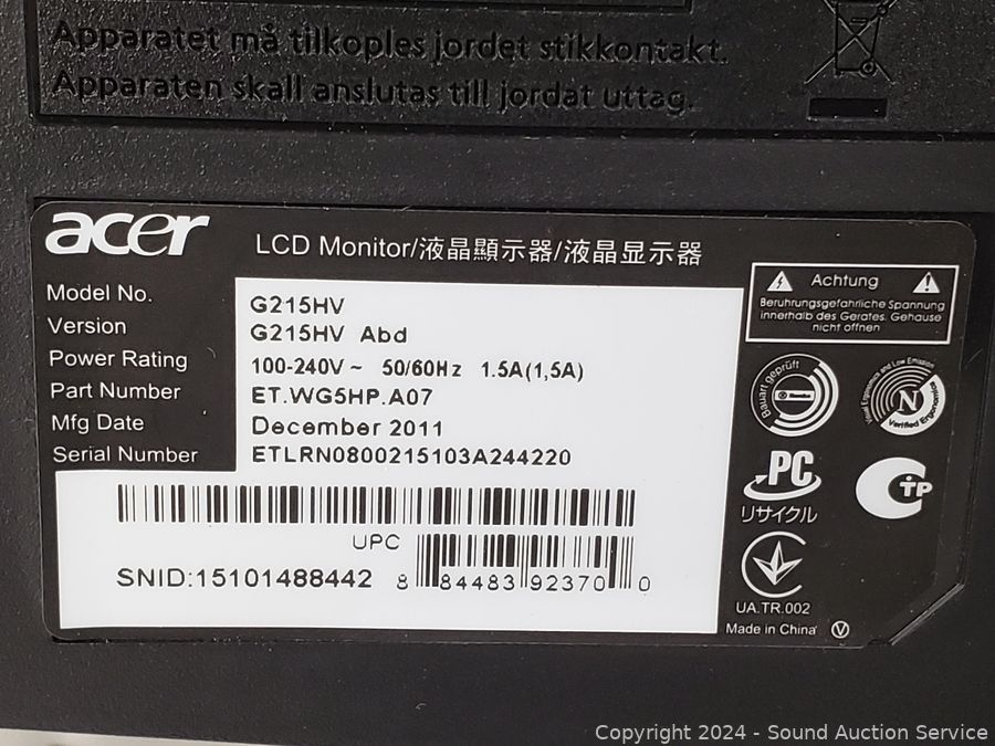Lot #0010: 2 Acer G2115HV 21" LCD Monitors