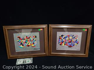 #46/95 & #74/95. Framed, matted with glass. 13" x 16".