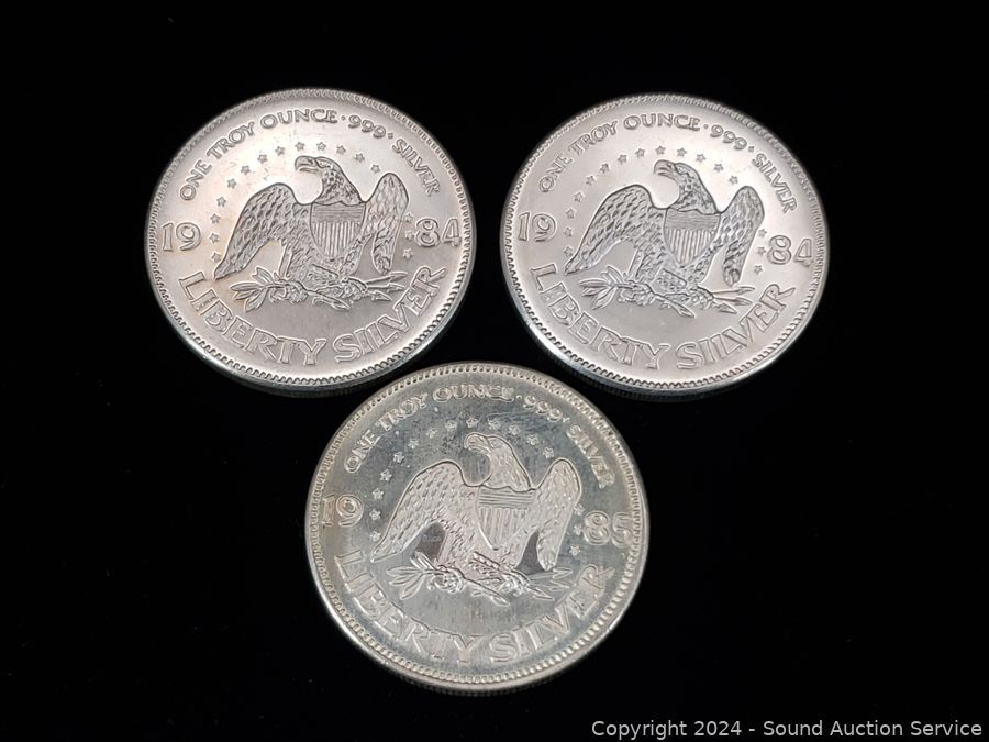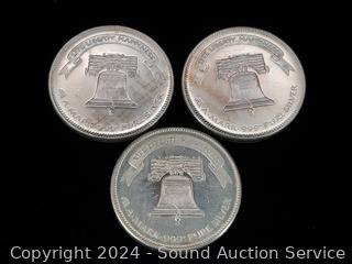 Lot #0117: (3) 1 Troy Ounce .999 Fine Liberty Silver Rounds