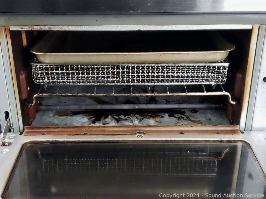 Appears to be functioning as intended, could use a proper cleaning. 13.75" H x 15.5" W x 12.5" D.