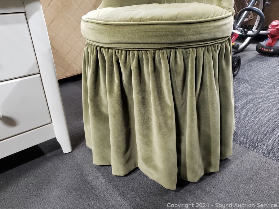 Lot #0012: Green Upholstered Swivel Accent Stool/Chair