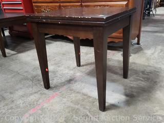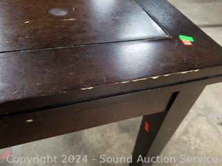Some scuffs, wear to finish, more so on side table. Approx. 22" H x 20" x 22" & 18" H x 47.5" x 23.5".