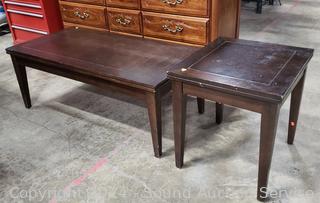 Lot #0056: 2pc Dark Finish Coffee & Matching Side Table