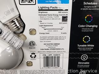Lot #0252: 2pk Feit Smart Wifi LED Light Bulbs