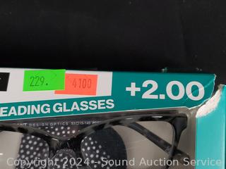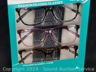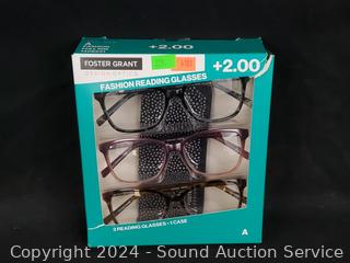 Lot #0229: 3 Foster Grant Fashion +2.0 Reading Glasses w/1 Case