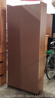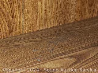 Some scuffs, a few damaged spots on shelves, finish is starting to peel along the bottom. Approx. 72" H x 30" W x 12" D.