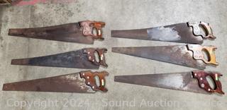 Lot #0080: 6 Vintage Crosscut Handsaws