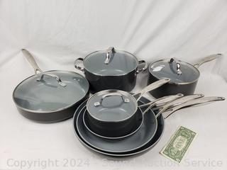 Lot #0214: 7 Green Pan Non-Stick Ceramic Cookware w/4 Lids