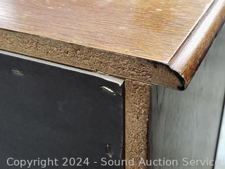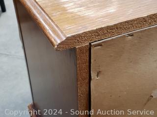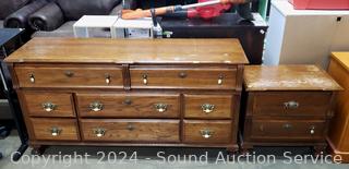 Various scuffs, wear to finish. 33.5" H x 64" W x 18" D dresser, 24.5" H x 26" W x 16" D nightstand.