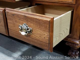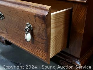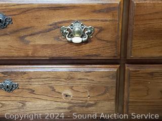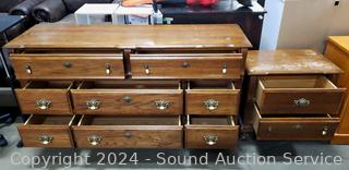 Lot #0019: 8-Drawer Oak Finish Dresser & Matching 2-Drawer Nightstand