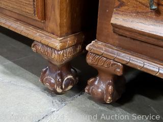 296 Lots including Unique Mahogany Dragonfly Carved 2-Tier Accent Table, Steel Railing, Crab Pots, Victorian Tapestries, Elec. Pressure Washer, Vintage Hutches, Bookcases, Dressers, Craftsman Toolbox Loaded w/Tools, Vintage Crosscut Handsaws, Ornate Parker Southern Handcrafted Throne Armchairs, Chainsaw Carved Seahawk Sculpture, Round Oak Clawfoot Dining Table w/4 Chairs, Rug/Mats, Assorted Power/Hand Tools/Bits/Accessories, Thomas Pacconi Ornaments, Sports Trading Cards, Footwear, Lawn & Garden Hoses, Lighting, Personal Hygiene Products, Bedding, Cookware & More!!!