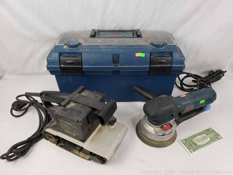 Lot #0137: Craftsman 4x21" Belt Sander w/19.5" Toolbox & Bosch Orbital Sander