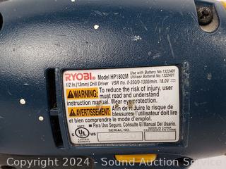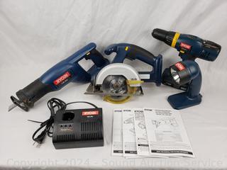 Lot #0112: Ryobi 6pc 18V Cordless Tool Set w/Case