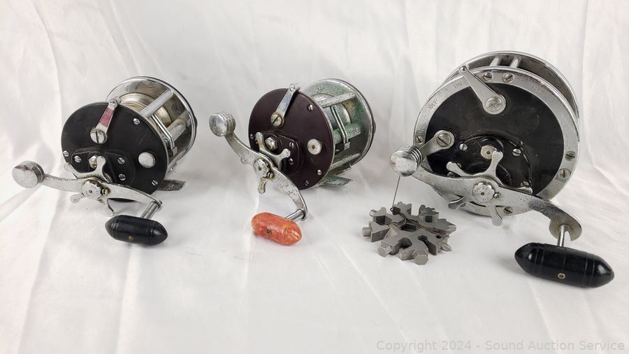 (5) Penn 209 Level Wind, Ocean City 923, Olympic Dolphin 631-LW, Ocean City 1581, Daiwa Magforce, Penn 49 Reel. Signs of wear from age, use.