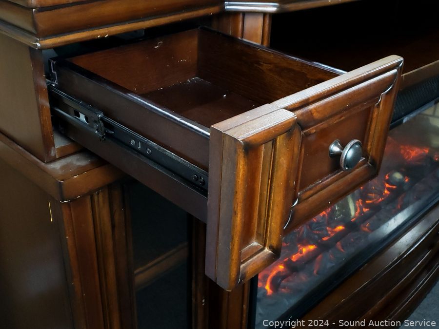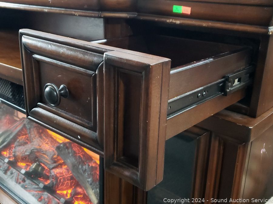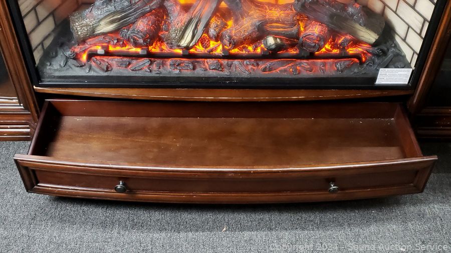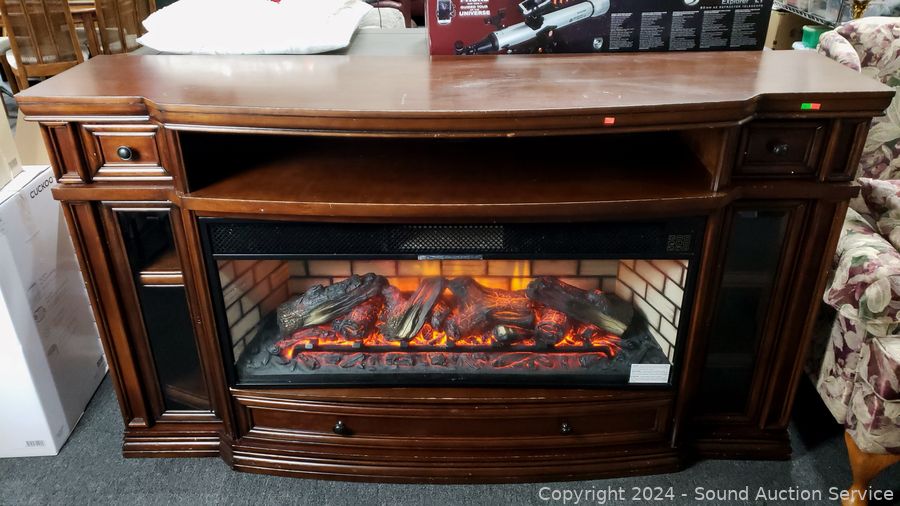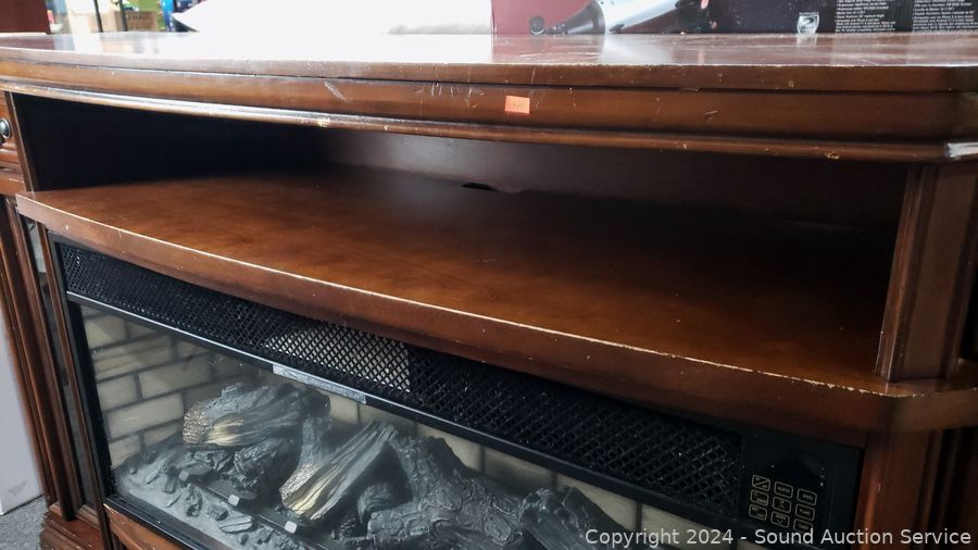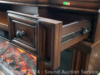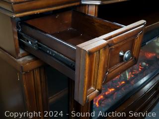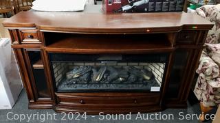 Lot #0030: Cherry Finish Electric Mantle Fireplace TV Console