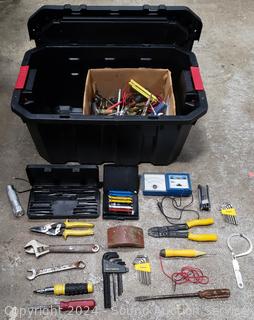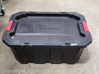 Lot #0303: Husky Heavy Duty Tote w/Lid & Assorted Tools