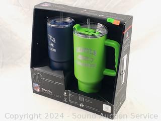 Lot #0294: 2 Seattle Seahawks Vacuum Insulated Steel Travel Tumbler Set